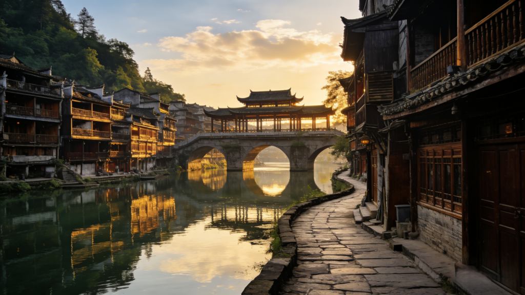Experience the purest Miao village customs in Fenghuang Ancient City, with small bridges and flowing water, and wooden stilted houses