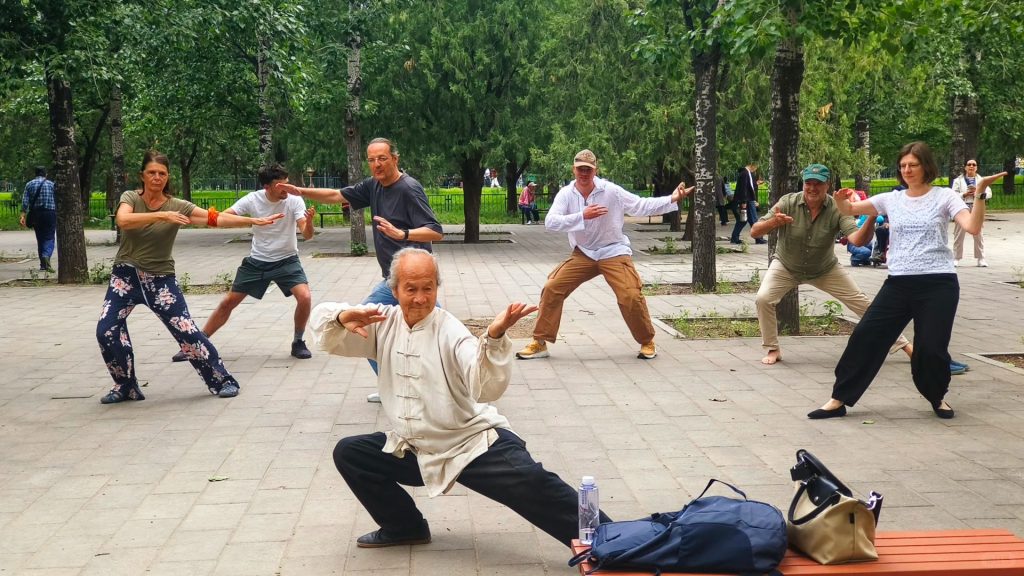 Playing Tai Chi with local residents in Shanghai City Wall Park is a health exercise that has been passed down for thousands of years, and you can feel the airflow flowing in your body.